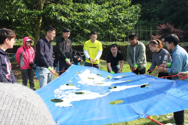 上午十時許,團員們來到余姚市鹿亭鄉中村白云橋旁,開始了為期一天的團建活動。在教練的指導下,大家隨機組成三組,開始了“極限5分鐘”、“貪吃蛇”、“環游世界”等游戲對抗賽。緊張、激烈、寓教于樂的游戲比賽,讓團員之間迅速熟悉起來,并形成相互依賴、彼此信任、團結協作的關系。游戲之外,團員們還體驗了一把“溜索”的驚險與刺激。一天的活動下來,大家收獲的不僅僅是鹿亭美麗鄉村的景色,還有挑戰艱難險阻的樂趣,以及對團隊力量的更深認識!